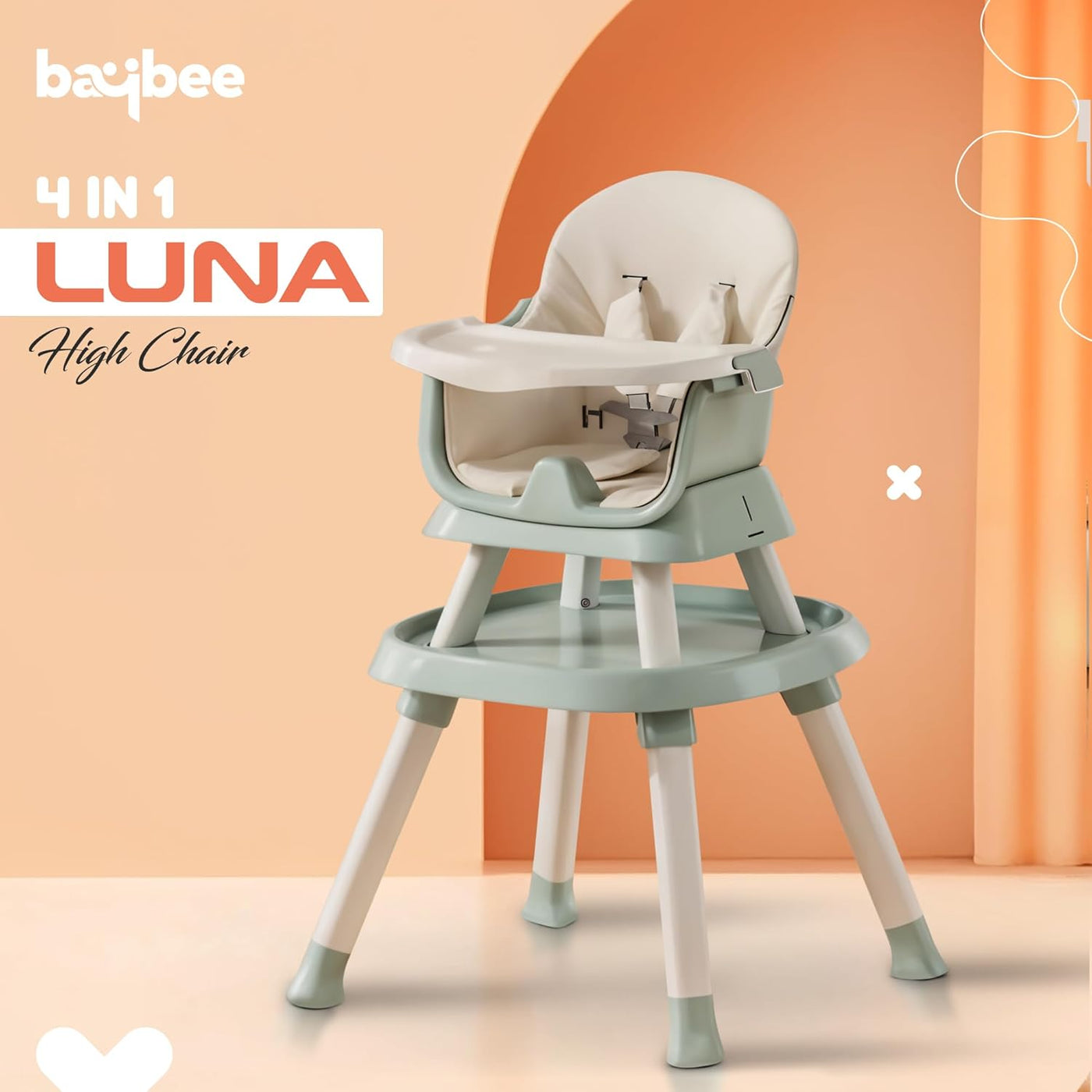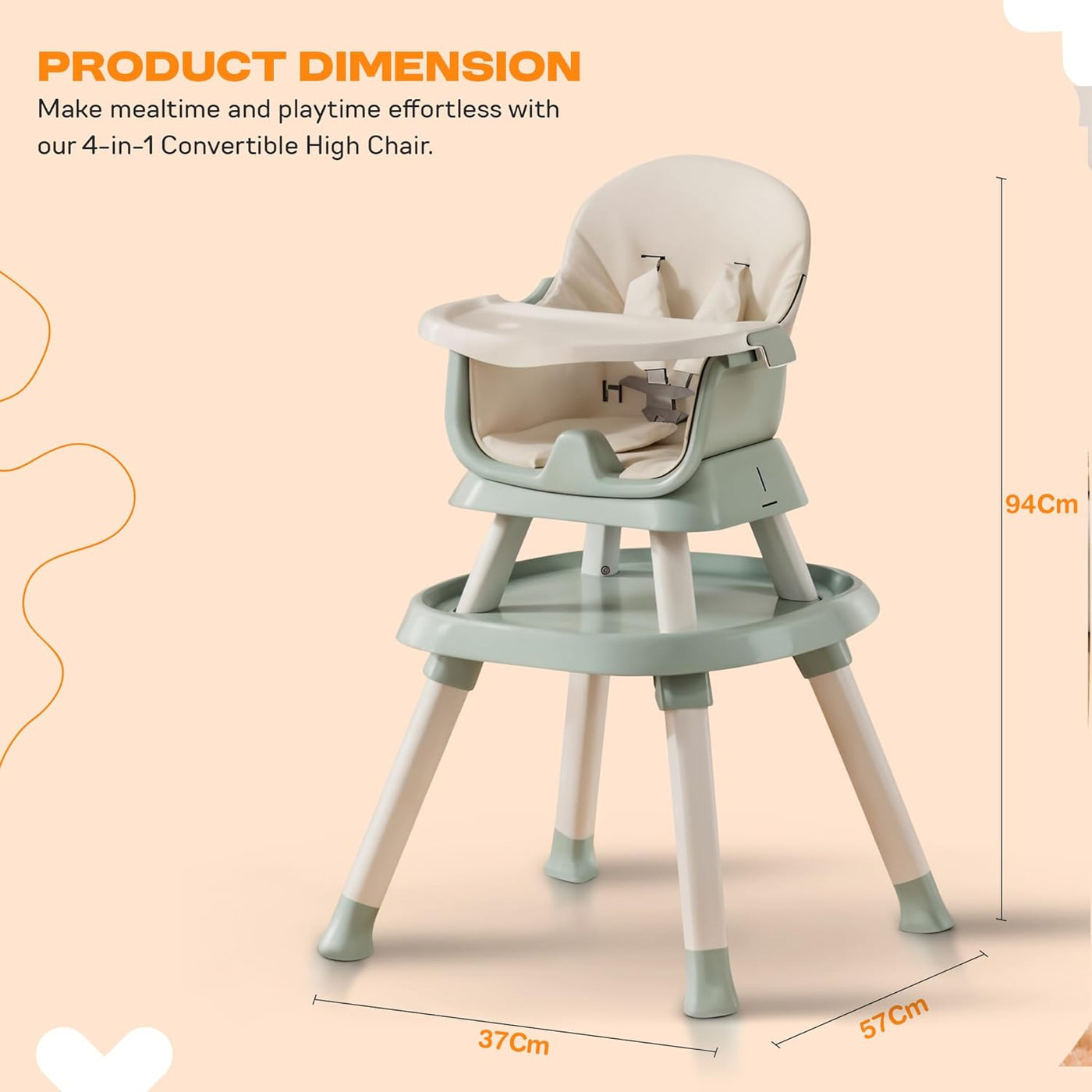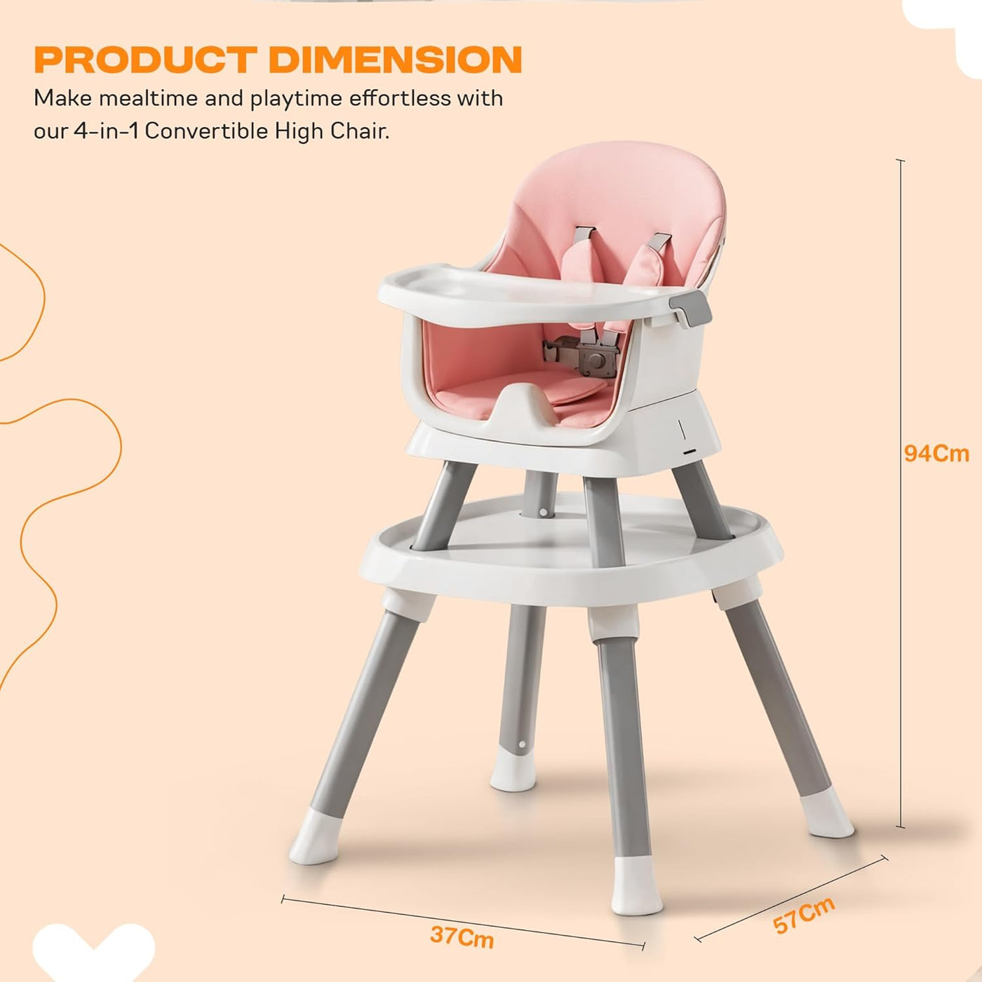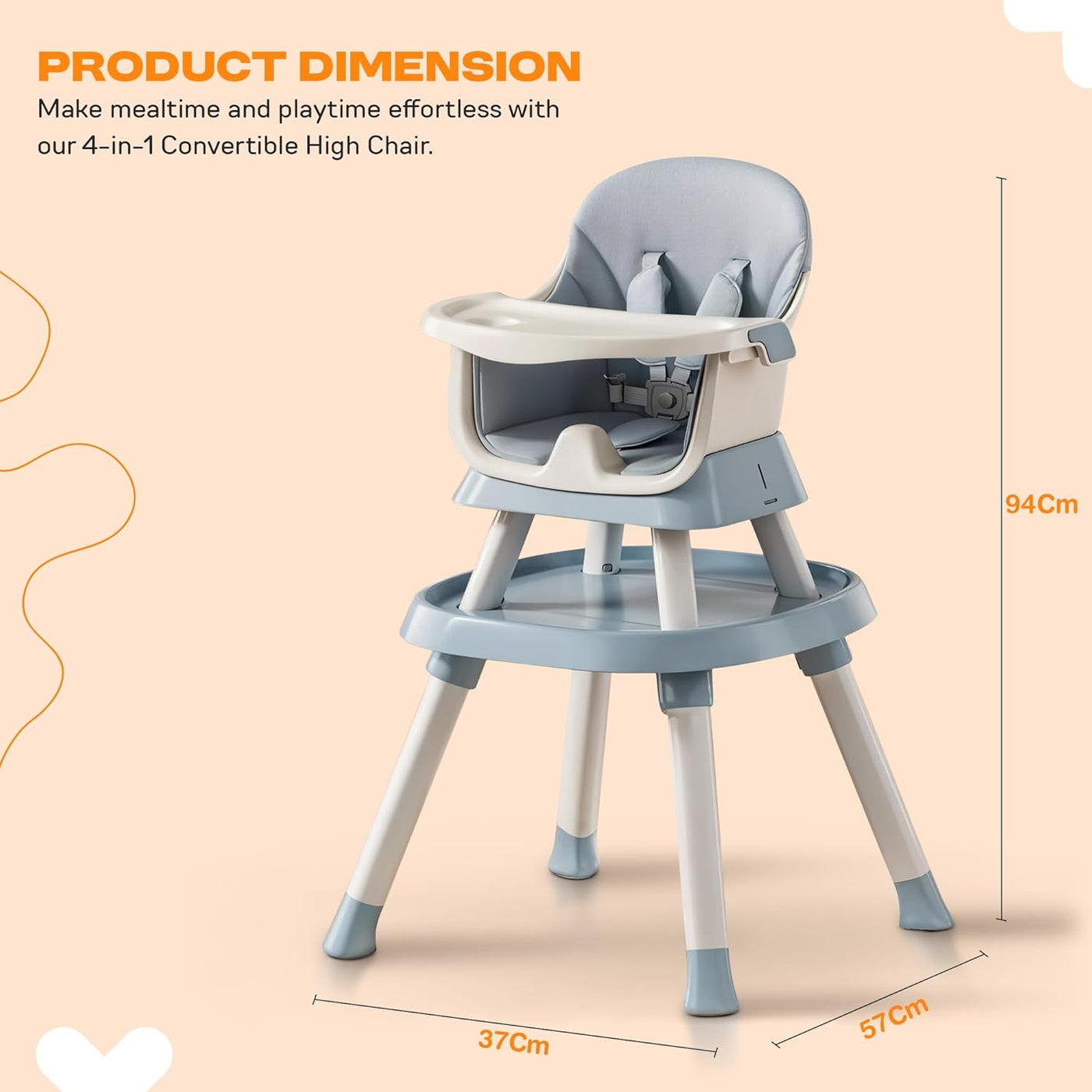The Baybee 4-in-1 Convertible High Chair is the ultimate solution for your growing child’s needs. Designed to transform effortlessly into a high chair, booster seat, dining chair, or study table and chair combo, it offers unmatched versatility for every stage of development. With adjustable height settings, it adapts perfectly to various table levels, ensuring comfort and convenience. Safety is a priority with the secure 5-point harness system, keeping your child safely strapped in during meals or playtime. The removable food tray allows for quick and hassle-free cleaning, making mealtimes stress-free. Crafted with durable, high-quality materials in a sleek, modern design, this chair combines style and functionality to complement any home.