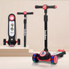 Smooth and Stable Ride : This 3-wheeled scooter offers excellent balance with a wide deck and shock-absorbing wheels for a smooth, comfortable ride. Full-contact rear brakes provide quick and easy stopping, ensuring a safe cruise on any surface. LED Light-Up Wheels for Extra Fun : The scooter features bright LED front PU wheels and a smaller rear PP wheel that light up while spinning, making rides exciting during the day and dazzling at night, adding an extra layer of fun for kids. Adjustable Handlebar for Growing Kids : Designed to grow with your child, the handlebar can be adjusted to three heights with a secure press button lock, offering long-lasting enjoyment for kids of different ages. User-Friendly and Safe Design : Equipped with lean-to-steer technology, this lightweight scooter makes turning intuitive and balancing easy. ABEC-7 bearings ensure smooth, quiet gliding, while the aluminum-reinforced rear brake and low deck provide quick stops and easy access. Quick-Release Handlebar for Easy Storage : The scooter arrives fully assembled and ready to ride. With a simple button press, the handlebar detaches in seconds, making storage and transportation hassle-free for parents on the go.